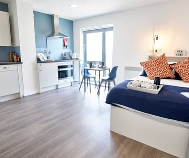 Either a premium room in a Private Hall of Residence or a self-contained flat or apartment where all of the amenities are in one space. Typically the most expensive option.