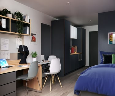 Either a premium room in a Private Hall of Residence or a self-contained flat or apartment where all of the amenities are in one space. Typically the most expensive option.