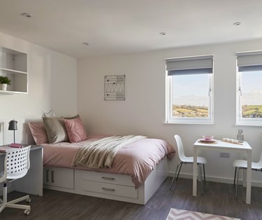 Either a premium room in a Private Hall of Residence or a self-contained flat or apartment where all of the amenities are in one space. Typically the most expensive option.
