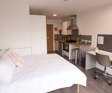 Either a premium room in a Private Hall of Residence or a self-contained flat or apartment where all of the amenities are in one space. Typically the most expensive option.