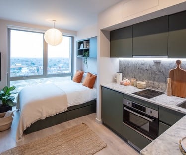 Either a premium room in a Private Hall of Residence or a self-contained flat or apartment where all of the amenities are in one space. Typically the most expensive option.