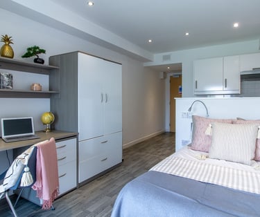 Either a premium room in a Private Hall of Residence or a self-contained flat or apartment where all of the amenities are in one space. Typically the most expensive option.