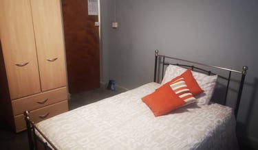 A self-contained room, which includes most amenities but with shared bathroom facilities.