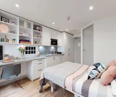 Either a premium room in a Private Hall of Residence or a self-contained flat or apartment where all of the amenities are in one space. Typically the most expensive option.