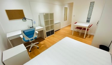 A self-contained room, which includes most amenities but with shared bathroom facilities.