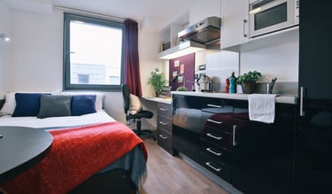 Either a premium room in a Private Hall of Residence or a self-contained flat or apartment where all of the amenities are in one space. Typically the most expensive option.