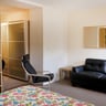 Fully fitted kitchen with dishwasher, plenty of cupboard storage, oven, hob and microwave convection oven. Large living area with bistro dining table and chairs. Freeview TV. King size bed, bedside tables, 2 metres of wardrobe space, desk, executive style chair and bookshelves. Ensuite shower room with power shower, vanity sink with storage and heated towel rail.