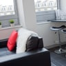 Modern 2 bed apartment equipped with leather sofas, bar stools, flat screen TV, DVD and freeview TV. Each bedroom contains a double-bed, headboard, desk with drawers, leather desk chair and combined wardrobe/ drawers. Washer/ dryer in every apartment.
