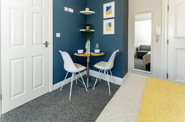 Bank Chambers Studio Apartments is an exclusive development of 13No. Self contained Studios Apartments. Situated in a former Bank, this grade 2 listed building provides 3 floors of accommodation which is accessed via its own private grand entrance hall off Moss Street. From here the scheme makes its way upto a range of bespoke studios with each student living space individually designed to a very high specification and standard.