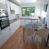 This house has a lot of communal space with a large living room with sofas and a TV, a very spacious kitchen with masses of storage and a utility area.