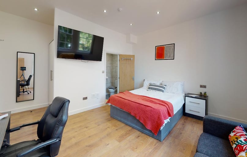 The flats are fully furnished including a double bed with a luxury memory foam mattress, fitted wardrobe, desk, chair and LED TV. The sleek and stylish kitchen area includes an oven, hob, extractor fan, fridge/freezer, storage cabinets and you have the added benefit of having use of our laundry room at no extra cost.