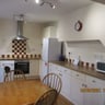 Modern fitted kitchen with cooker, fridge freezer and washing machine, microwave