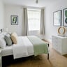 -Fully furnished double bedroom with desk, drawers and wardrobe.