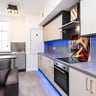 Apartment Kitchen/Lounge/Diner: Large area for socialising, eating, and lounging with a generous TV. An impressive fully fitted kitchen. Fully integrated, modern units comprising of fridge/freezer, electric hob, electric oven, worktop space, extractor fan and lots of space.