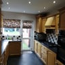 **Kitchen diner with all integrated white goods - washing machine, tumble dryer, dishwasher, fridge & freezer. Electric double oven & large microwave. Well equipped with all crockery, cutlery & utensils**