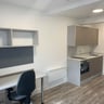 Large main room, tastefully furnished and decorated with Video entry phone, Double bed, wardrobe, drawers, built in desk, chair LCD TV and shelves.
