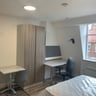 Large main room, tastefully furnished and decorated with Video entry phone, Double bed, wardrobe, drawers, built in desk, chair LCD TV and shelves.