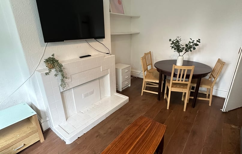 The sitting room is at the back of the house with a huge bay window looking onto the back garden and three large sofa's including 'The Clam' (the comfiest sofa in Fallowfield) . This house also comes with a wall mounted flat screen TV.