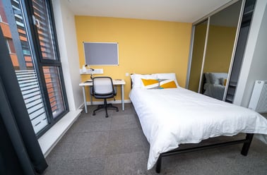 All apartments have shared communal living space comprising of a large fitted kitchen including 4 ring halogen hob, full sized oven, microwave, fridge/freezer, dishwasher, granite worktops, dining table & chairs, large pedal bin, sofas, coffee table, Henry Hoover and large wall mounted SMART TV. All bedrooms have fully tiled, quality en-suites with large shower area, 4ft double beds, desk & chair, chest of drawers & double mirrored fitted wardrobes. 50mb/s Wi-Fi throughout the development.