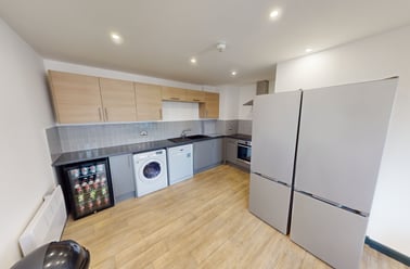 All apartments have hardwood flooring in the lounge, kitchen area, entrance hall and in the bedrooms. The modern integrated kitchens are fully equipped with everything you need as a resident to get settled in straight away with your own electric hob, dishwasher, separate drinks cooler, washer/dryer, and extra-large fridge/freezer.!