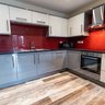 The modern kitchen/living area has all integrated appliances. The large kitchen area has full granite worktops and splash backs with has amtico flooring throughout the property. The 50/50 fridge/freezer and washer/dryer and dishwasher are all integrated. The electric built-in-oven and electric hob. The living area has large floor to ceiling windows giving great views of the city. It comes with 2 faux leather 2-seater settees, a coffee table and TV stand. We can also supply you a TV for an additional cost.