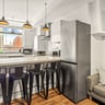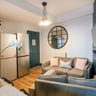Recently refurbished and fully furnished, this flat is ready to move into and includes new furniture and kitchen appliances (as of summer 2022). The open-plan lounge features a large flat-screen TV with sound bar and comfortable seating, perfect for relaxing after lectures. The fitted kitchen comes with a washer-dryer and fridge-freezer, making everyday life convenient and stress-free.