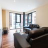 The modern kitchen/living area has all integrated appliances. The large kitchen area has full granite worktops and splash backs with has amtico flooring throughout the property. The 50/50 fridge/freezer and washer/dryer and dishwasher are all integrated. The electric built-in-oven and electric hob. The living area has large floor to ceiling windows giving great views of the city. It comes with 2 faux leather 2-seater settees, a coffee table and TV stand. We can also supply you a TV for an additional cost.