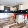 The modern kitchen/living area has all integrated appliances. The large kitchen area has full granite worktops and splash backs with has amtico flooring throughout the property. The 50/50 fridge/freezer and washer/dryer and dishwasher are all integrated. The electric built-in-oven and electric hob. The living area has large floor to ceiling windows giving great views of the city. It comes with 2 faux leather 2-seater settees, a coffee table and TV stand. We can also supply you a TV for an additional cost.