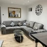A very large open plan lounge /kitchen with fully fitted kitchen with a dishwasher, washing machine, tumble drier, microwave, a large American style fridge freezer PLUS a second built in freezer, loads of cupboard space, comfortable settees and armchair.