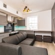 Apartment Kitchen/Lounge/Diner: Large area for socialising, eating, and lounging with a generous TV. An impressive fully fitted kitchen. Fully integrated, modern units comprising of fridge/freezer, electric hob, electric oven, worktop space, extractor fan and lots of space.