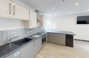 All apartments have hardwood flooring in the lounge, kitchen area ,entrance hall and in the bedrooms. The modern integrated kitchens are fully equipped with everything you need as a student to get settled in straight away with your own electric hob, dishwasher, separate drinks cooler, washer/dryer, and extra-large fridge/freezer.!