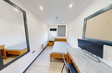 Each apartment is finished to a good standard furnished with modern contemporary furniture and benefits from a communal open plan lounge, dining and kitchen areas, separate bathroom (with W/C) ,shower room (with W/C) and a hallway. A number of apartments have French doors in the lounge/dining rooms leading to Juliet Balconies. Each bedroom is fitted-out to an excellent standard to accommodate Residents needs.