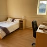 - Bedroom 2: Double bed, wardrobe, chest of draws, desk and chair, bedside table, mirror and shelving unit.