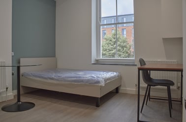 Each apartment features a wardrobe, a 4ft double bed, and a desk area. The bathrooms are equipped with constant high-pressure hot water and a thermostatically controlled shower.