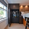 In the kitchenette (that can also be closed off when not in use), you’ll find 2 x induction hobs, a sink, microwave and an under-the-counter fridge with freezer box. You'll also find a comfortable armchair and coffee table to chill out in after a hard day. For additional storage, you can find space above the kitchenette, plus there’s also hanging space next to or at the end of the bed and a wall mounted TV