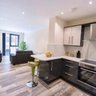 The modern kitchen/living area has all integrated appliances. The large kitchen area has full granite worktops and splash backs with has amtico flooring throughout the property. The 50/50 fridge/freezer and washer/dryer and dishwasher are all integrated. The electric built-in-oven and electric hob. The living area has large floor to ceiling windows giving great views of the city. It comes with 2 faux leather 2-seater settees, a coffee table and TV stand. We can also supply you a TV for an additional cost.