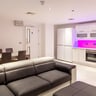 Apartment KITCHEN/LOUNGE/DINER: Large area for socialising, eating, and lounging with a generous TV. An impressive fully fitted kitchen. Fully integrated, modern units comprising of fridge/freezer, electric hob, electric oven, worktop space, extractor fan and lots of space.