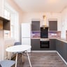 This open-plan studio apartment is thoughtfully designed and beautifully furnished, offering ample storage throughout. The apartment features a fully fitted kitchen equipped with a 4-zone hob, oven, large fridge/freezer and breakfast bar, providing a practical and comfortable space for everyday living.