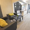 Spacious lounge area with 2x sofas, wall mounted 50-inch Smart LED TV & 2x coffee tables.