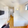 Each studio features a fully fitted private kitchen, complete with modern units and essential appliances, allowing residents to live independently. The living and sleeping area include a comfortable double bed, desk and desk chair, wardrobe and storage, and a TV within the room, creating a well-balanced space for both study and relaxation. The private en-suite bathroom is fully fitted with a shower cubicle, toilet, wash basin, mirror, and storage, providing complete convenience within the studio.