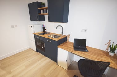 This brand new development is situated in a great location opposite the Victoria Centre and less than a 2 minute walk from the Nottingham Trent University city campus. A stylish self-contained studio apartment, double bed, generous study and storage space along with its own kitchen and spacious en-suite with ample sized shower.