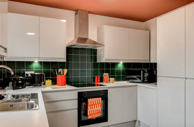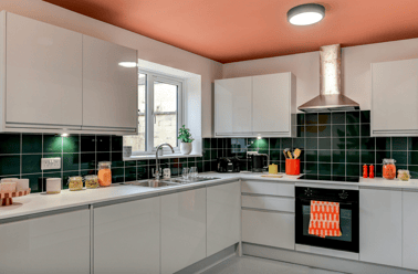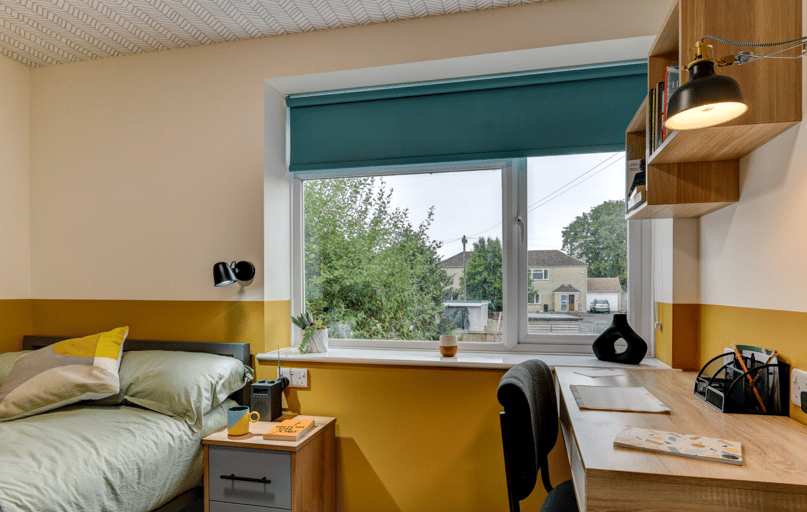 This spacious six-bedroom house offers double, private bedrooms, each thoughtfully furnished with earthy, calming tones. Every room includes a spacious desk, a comfortable double bed, and fitted units, providing an ideal environment for both relaxation and study. The large communal areas are perfect for socialising and hosting gatherings, fostering a sense of community among residents. The design theme of calming, earthy tones extends throughout these spaces, creating a harmonious and inviting atmosphere.