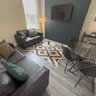 The cozy lounge comes with a brand-new flat-screen TV and coffee table, perfect for chilling with friends.