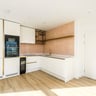 The apartment’s dual-aspect design floods the apartment with natural light, complemented by floor-to-ceiling windows and a south-west-facing balcony. The bright and spacious open-plan kitchen and living area is the perfect space for entertaining friends and family. The kitchen features A and A+ rated white goods, an induction hob, fan-assisted electric oven, microwave, wine cooler, fridge-freezer, and a fully integrated dishwasher—all enhanced by sleek finishes such as a stainless steel recessed sink.