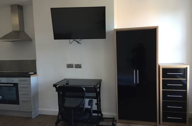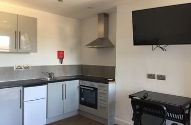 The flats are fully furnished including a double bed with a luxury memory foam mattress, fitted wardrobe, desk, chair and LED TV. The sleek and stylish kitchen area includes an oven, hob, extractor fan, fridge/freezer, storage cabinets and you have the added benefit of having use of the laundry room at no extra cost.