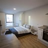 Each self-contained studio has been superbly designed and has a modern kitchen with four ring hob, full size oven, 50/50 fridge/freezer and separate microwave. The studio also has a double bed, individual en-suite facilities, flat screen TV and generous study and storage space. On every floor there are free laundry facilities.