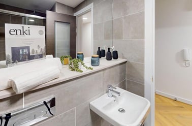 All rooms are fully furnished with double beds, bedside tables, fitted wardrobes, desk, office chair, shelf storage and flat screen smart TV. Each Bedroom has its own ensuite luxury bathroom including WC, wash basin and Shower cubicle as well as heated towel rail and fitted mirror.
