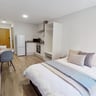 Each self-contained studio has been superbly designed and has a modern kitchen with four ring hob, full size oven, 50/50 fridge/freezer and separate microwave. The studio also has a double bed, individual en-suite facilities, flat screen TV and generous study and storage space. On every floor there are free laundry facilities.