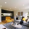 Inside, the apartments have an inviting open-plan living area, furnished with pieces chosen to perfectly complement the style and character of the space. The kitchens are sleek and functional, fitted with integrated appliances including a cooker, hob and extractor, along with a fridge freezer, making them as practical as they are stylish.