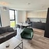 The apartment offers a open plan living area with handpicked furniture to match the feel of the apartment perfectly. Sleek and functional kitchen area with integrated appliances including electric hob, oven, fridge and freezer. There is plenty of natural light coming through this apartment with all the big floor to ceiling windows and overlooking the city centre.
